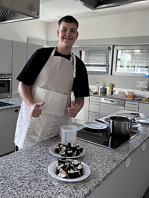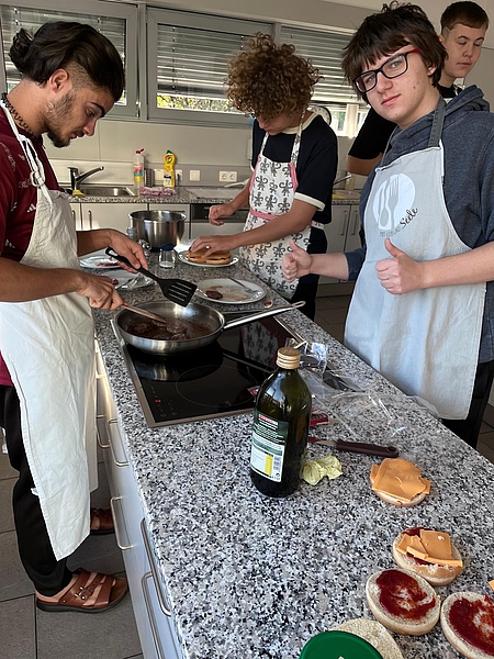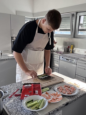 Die HFM 4 fleißig und engagiert beim Kochen. Es gab selbstgemachte Burger und Shushi für alle!