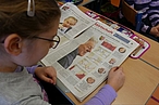 Von 16. Jänner bis 10. Februar drehte sich in der 4.IVS alles um das Thema Zeitung. Wir beschäftigten uns mit vielen Fragen: Wie entsteht sie? Aus welchen Teilen besteht eine Zeitung? Welche Zeitungen gibt es? Außerdem machten wir eine große Umfrage unter Eltern und Bekannten. Jeden Tag bekamen wir unser eigenes Exemplar der OÖN und lasen fleißig darin. Darüber hinaus machten wir Suchspiele und ein Quiz zur Zeitung. Und dann entstand mit Interviews, Berichten, selbst gemachten Fotos, Werbung, Rätsel, Witzen... eine eigene Zeitung, die "Schulnachrichten". Auflage: 150 Stück! Zum Schluss besuchte uns noch der Fotograf der OÖN, Volker Weihbold und zeigte uns wie so ein Foto in die "Nachrichten" kommt. Sehr spannend! Herzlichen Dank für den netten Besuch!