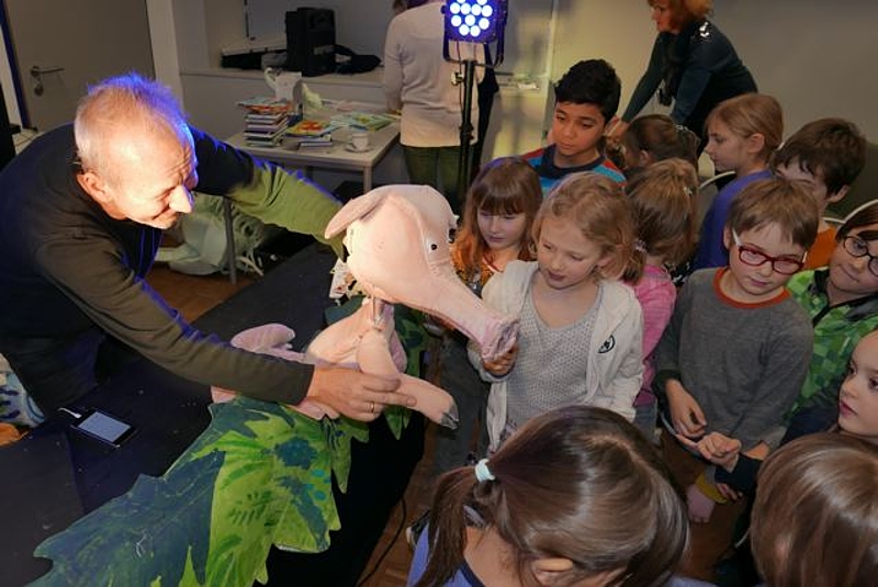 Schon zum zweiten Mal besuchte der bekannte Autor und Puppenspieler Stefan Karch unser Haus. Er ließ uns in seine fantasievolle Welt eintauchen und spannende Abenteuer miterleben. Seine Stimme, die Körpersprache, die selbst genähten Puppen und natürlich die dargestellten Geschichten fesselten alle SchülerInnen. Danke!
