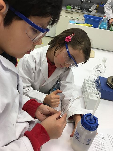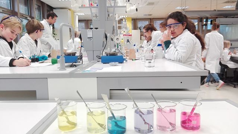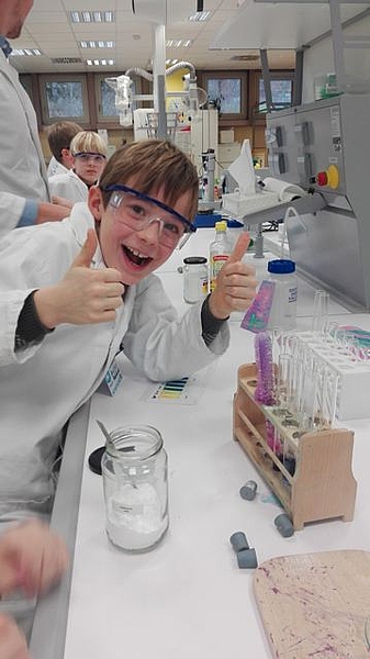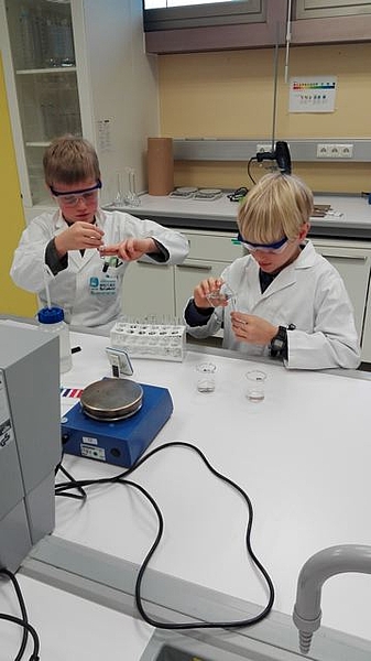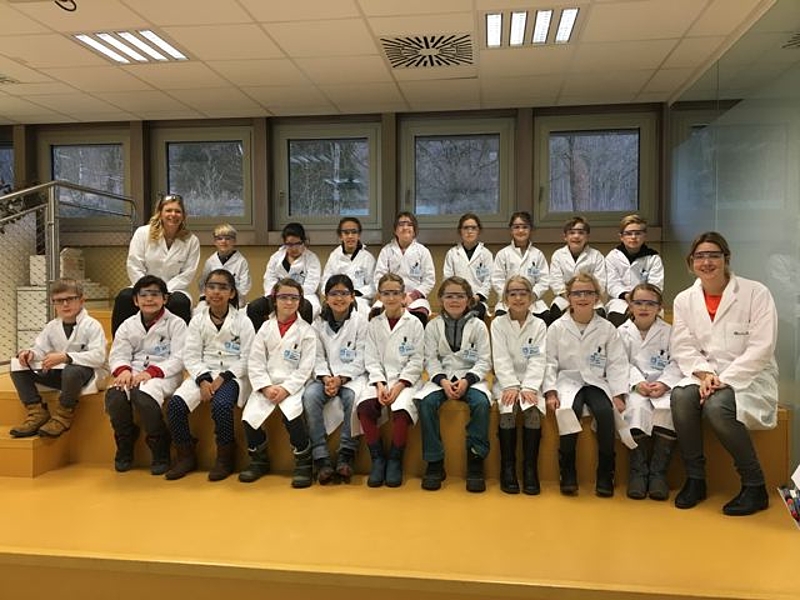 Die 3.IVS Klasse besuchte das Open Lab auf der JKU und durfte Forscherluft schnappen. Die Kinder hatten viel Freude und Eifer beim Experimentieren zum Thema »Chemie in Küche und Haushalt«. Die Schüler/innen lernten mit Hilfe von Rot- bzw. Blaukrautsaft (Indikator), Säuren und Laugen des Alltags anhand des pH-Wertes zu unterscheiden. Außerdem untersuchten wir, ob Zucker die Säurestärke in Limonade beeinflussen kann und erlernten, was Neutralisieren bedeutet. Wir erlebten, dass Säuren und Basen miteinander heftig reagieren können (Brausepulver- Kanone) und neue Stoffe dabei entstehen, wie z. B. das Gas Kohlendioxid. Wir hoffen, dass wir auch nächstes Jahr wieder einen der heißbegehrten Termine ergattern können.