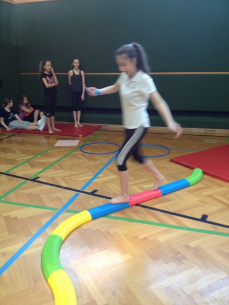 In der letzten Turnstunde vor den Osterferien durften die Schüler und Schülerinnen der 1. IMS und 1. HMS ihre Geschicklichkeit unter Beweis stellen. Was darf Ostern nicht fehlen? Natürlich Ostereier! Auf einem Löffel wurde zuerst ein Plastikei über einen Gerätehindernisbahn transportiert - das war aber nur der Probedurchgang. Die Spzialaufgabe war dann folgende: Sieger ist jene Gruppe, die es schafft, ein echtes Osterei auf einem Löffel über den Geräteparcour zu transportieren, ohne dass das Osterei hinunter fällt und zerbricht. Unser Schüler und Schülerinnen waren wirklich sehr geschickt, denn es gab nur Sieger! Jede Gruppe schaffte die Aufgabe mit Bravour. Als Belohnung gab es für jeden Sieger ein buntes Osterei.