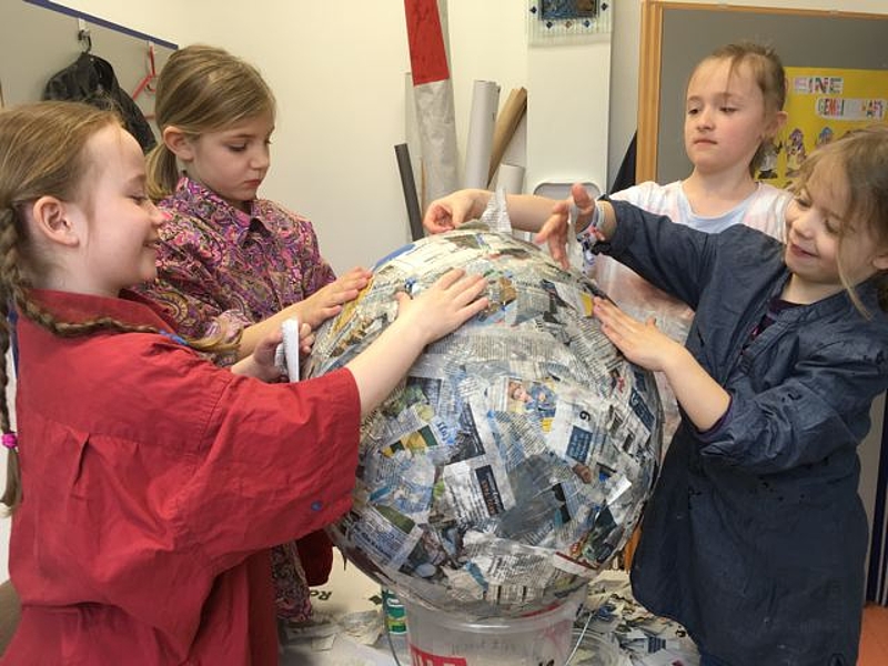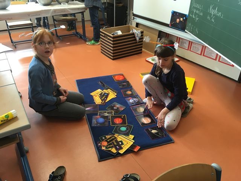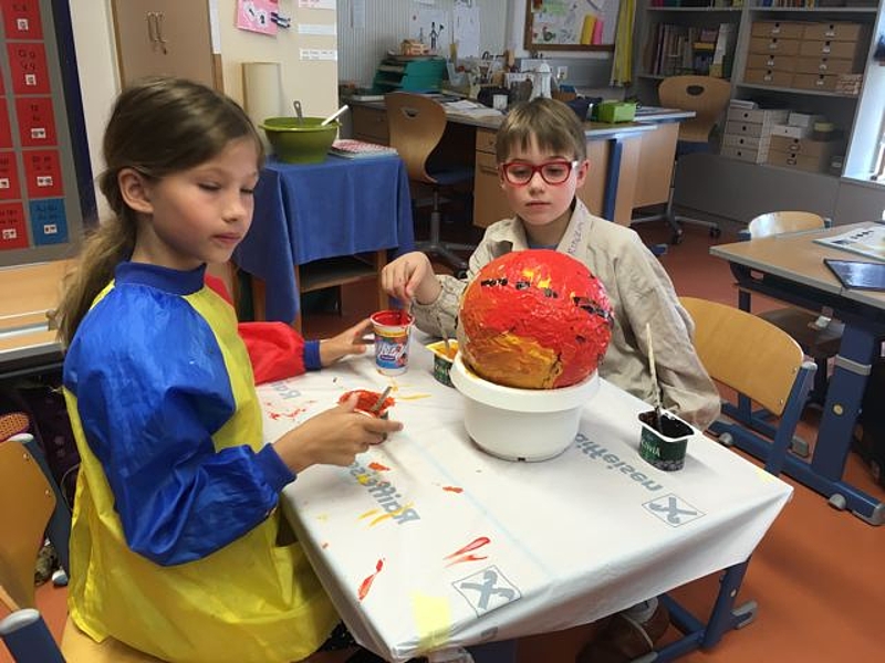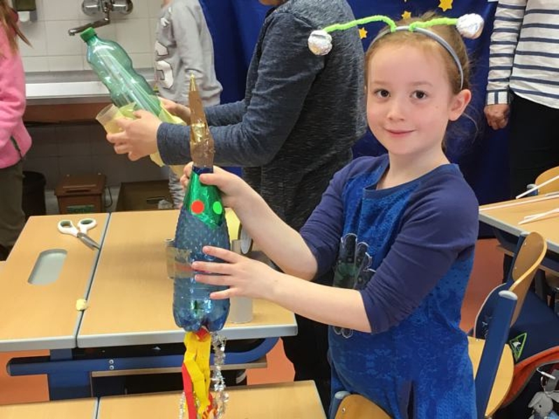 Fast drei Wochen stand das Thema „Planeten“ im Mittelpunkt. Wir beschäftigten uns mit dem Weltall und mit den Himmelskörpern, eigneten uns großes Wissen darüber an und bastelten Raketen aus Abfallmaterial. Außerdem entstanden in Gruppenarbeit die Planeten aus Papiermache, die nun im 2. Stock unseres Schulgebäudes zu bestaunen sind. Zum Abschluss ließen wir uns süße Planetenpralinen schmecken!