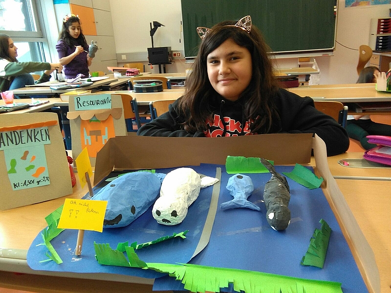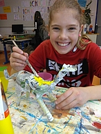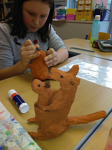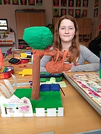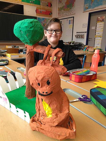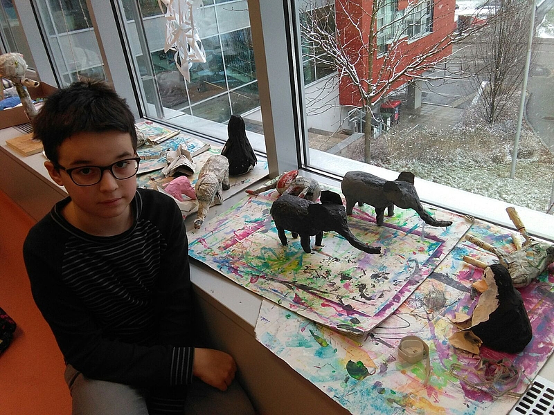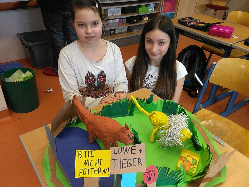 In Werken bastelten die Schüler und Schülerinnen mit viel Begeisterung und Liebe ins Detail sehr naturgetreue Tiere aus Papiermache und Kleister. Diese wurden dann bemalt und teils in Partnerarbeit oder Einzelarbeit ein passendes Gehege aus Tonpapier gemacht, sodass wunderschöne Tierlandschaften entstanden sind.