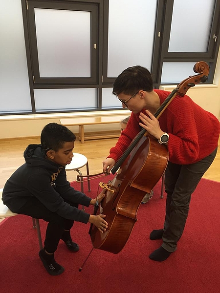 Unsere Musiklehrerin Dagmar hat ihr Cello mitgenommen!