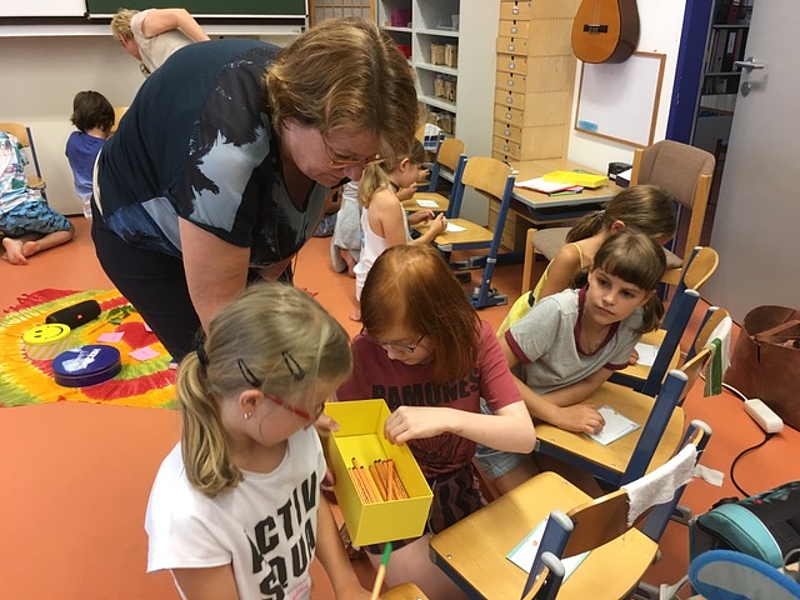 Gemeinsam formten wir den kleinen Sonnengruß, tanzten und lachten und schrieben uns gegenseitig Botschaften. Diese werden uns in den Ferien als Überraschung zugeschickt! Wir freuen uns schon jetzt darauf!
