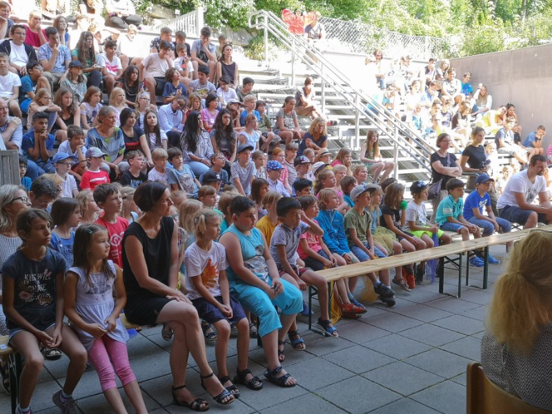 Gemeinsam feierten alle Schüler und Schülerinnen mit ihren Lehrern und Lehrerinnen eine multireligiöse Abschlussfeier im Schulhof. Gestaltet wurde diese von Pfarrer Helmuth Parth, unserer evangelischen Religionslehrerin Gabriele Bail und der ehemaligen islamischen Religionslehrerin Fr. Monika Marian Troschl. Wir hörten Texte aus dem Koran und der Bibel.
