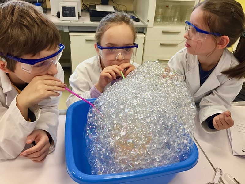 Im Rahmen unseres Sachunterrichtschwerpunktes "Wasser" besuchten wir am. 20. November das OpenLab an der JKU in Linz. In Forscherteams zu zweit experimentierten die SchülerInnen höchst professionell im Labor: Untersucht wurde nicht nur die Oberflächenspannung und die Löslichkeit von Stoffen in Wasser, sondern auch die Wirkung von Lösungsvermittlern und das Trennen von Stoffgemischen. Zuletzt versuchten wir uns noch an den größten Seifenblasen... Für den spannenden Vormittag bedanken wir uns beim Team des openLab mit Frau Dr. Renger!