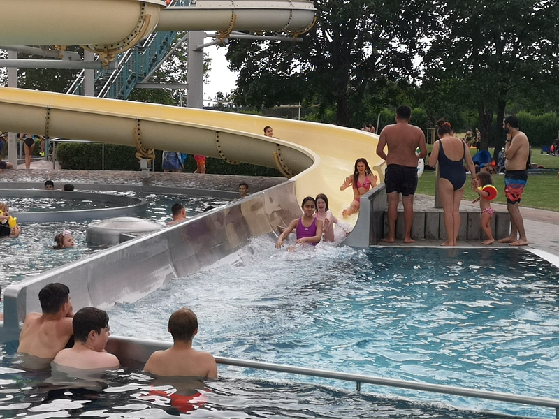 Im Rahmen des Sportunterrichtes verbrachten wir einen schwülen und heißen Nachmittag im Schörgenhubfreibad. Wir genossen das kühle Nass und die Rutsche.